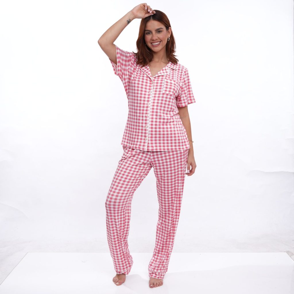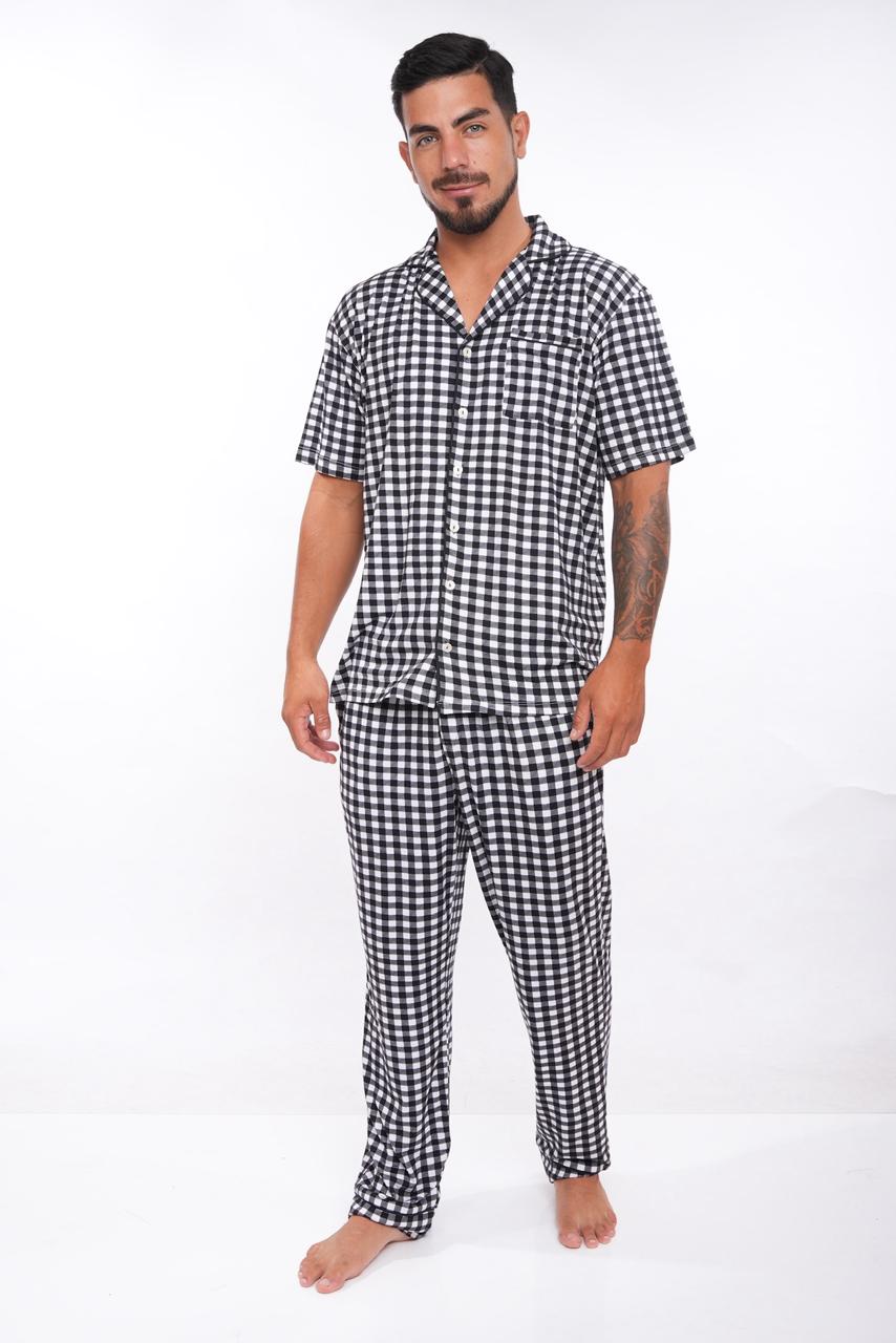 Pijama Camisera con short cuadros blanco con negro